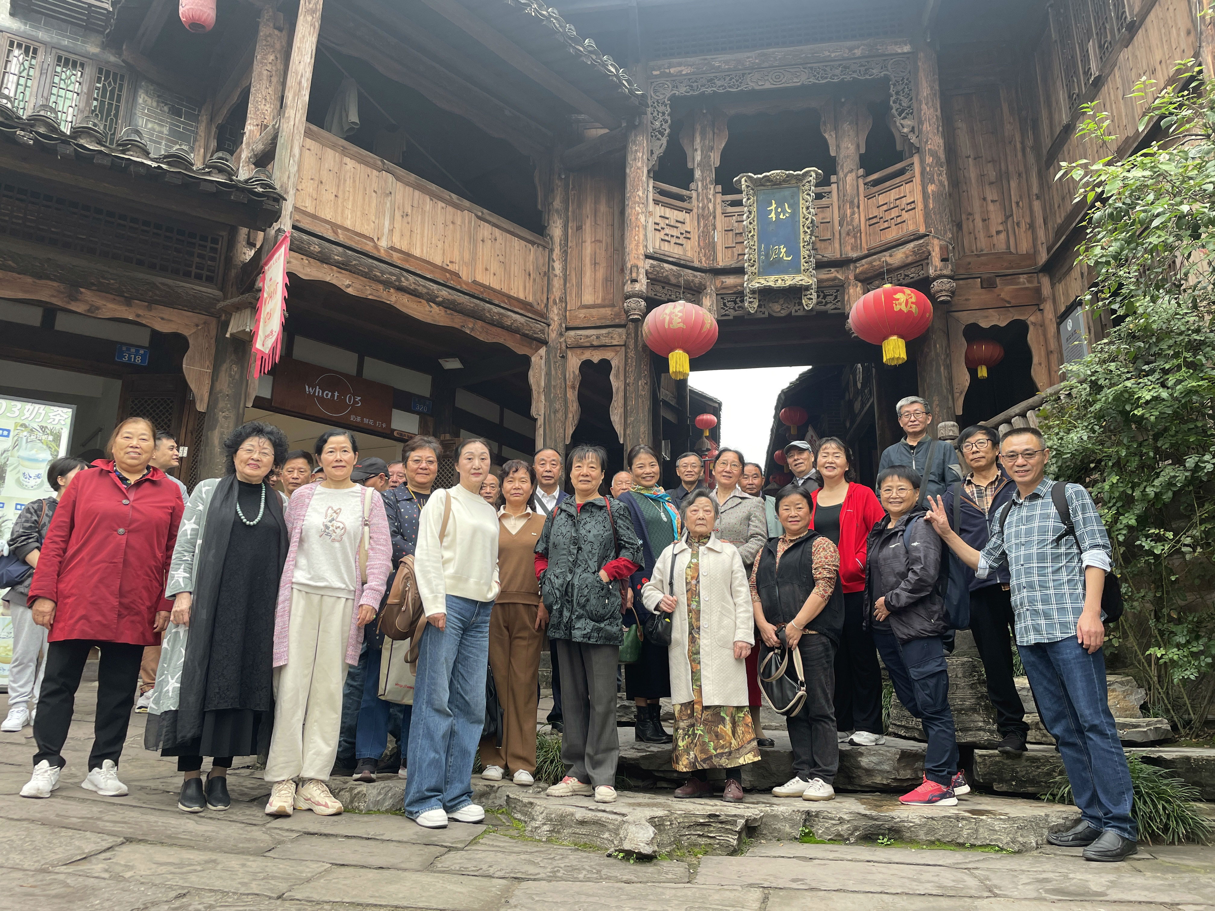 学院组织退休教职工前往永川松溉古镇开展秋游活动。古镇南邻长江,是重庆市首批历史文化名镇。雕花的檐角、精美的石雕和古朴的木质门楣,无不诉说着一段段历史故事。老同志们漫步在古朴的石板路上,观景拍照锻炼身体,回忆过往,交流近况,在欢声笑语中大家仿佛又回到了温暖的化院大家庭。为保证他们的安全,学院还特别安排了2名医护人员随行。