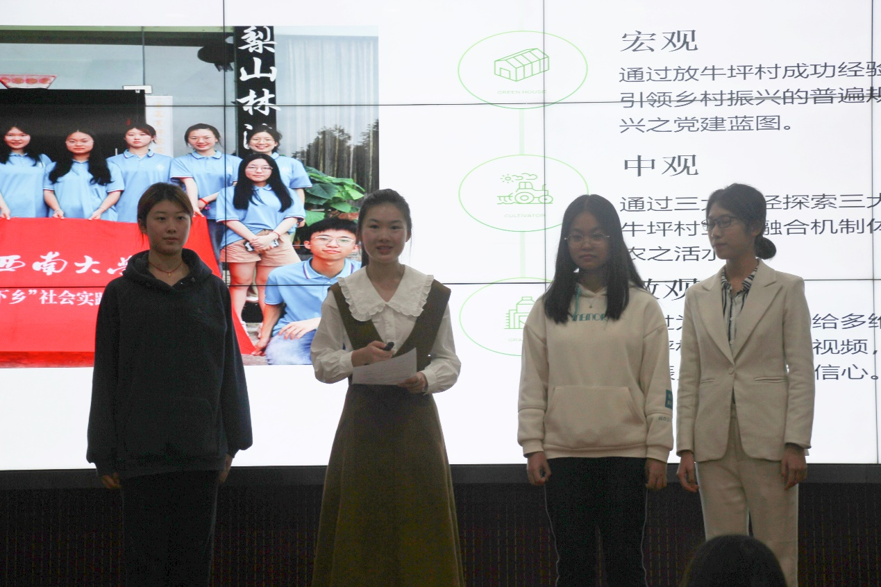 接着,六位小分队代表分别上台汇报,他们分别来自重庆北碚青春小分队、四川绵阳助农小分队、重庆渝北茨竹小分队、重庆奉节征橙小分队、重庆北碚龙车乡村发展观察团以及四川成都耕读小分队。六位代表分别从团队成员介绍、团队实践过程、团队实践成果和调研感悟等方面作出报告。报告中条理清晰、硕果累累,充分的体现了大学生积极进取乐于奉献的良好精神品质。