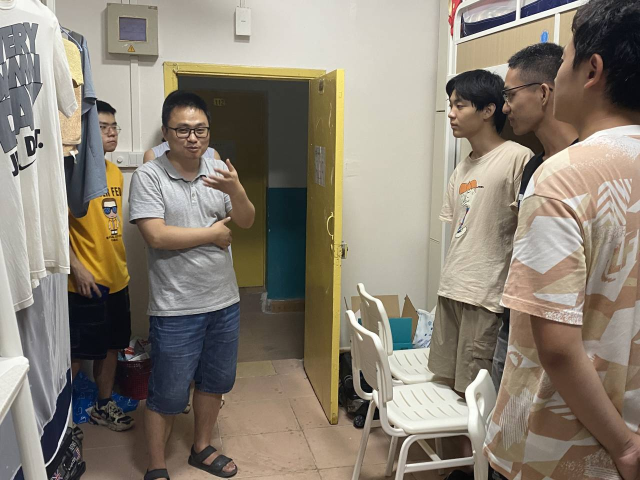 夏德全书记与同学们亲切交谈,询问了同学们入校后的生活情况,了解新生入学后遇到的困难和需求。夏书记和新生交谈甚欢,并且希望同学们能够认真学习,学有所成、学有所获、学有所用,以良好的状态迎接即将开始的大学生活。并且,夏书记非常关心新生的生活,亲自查看新生们的居住情况。